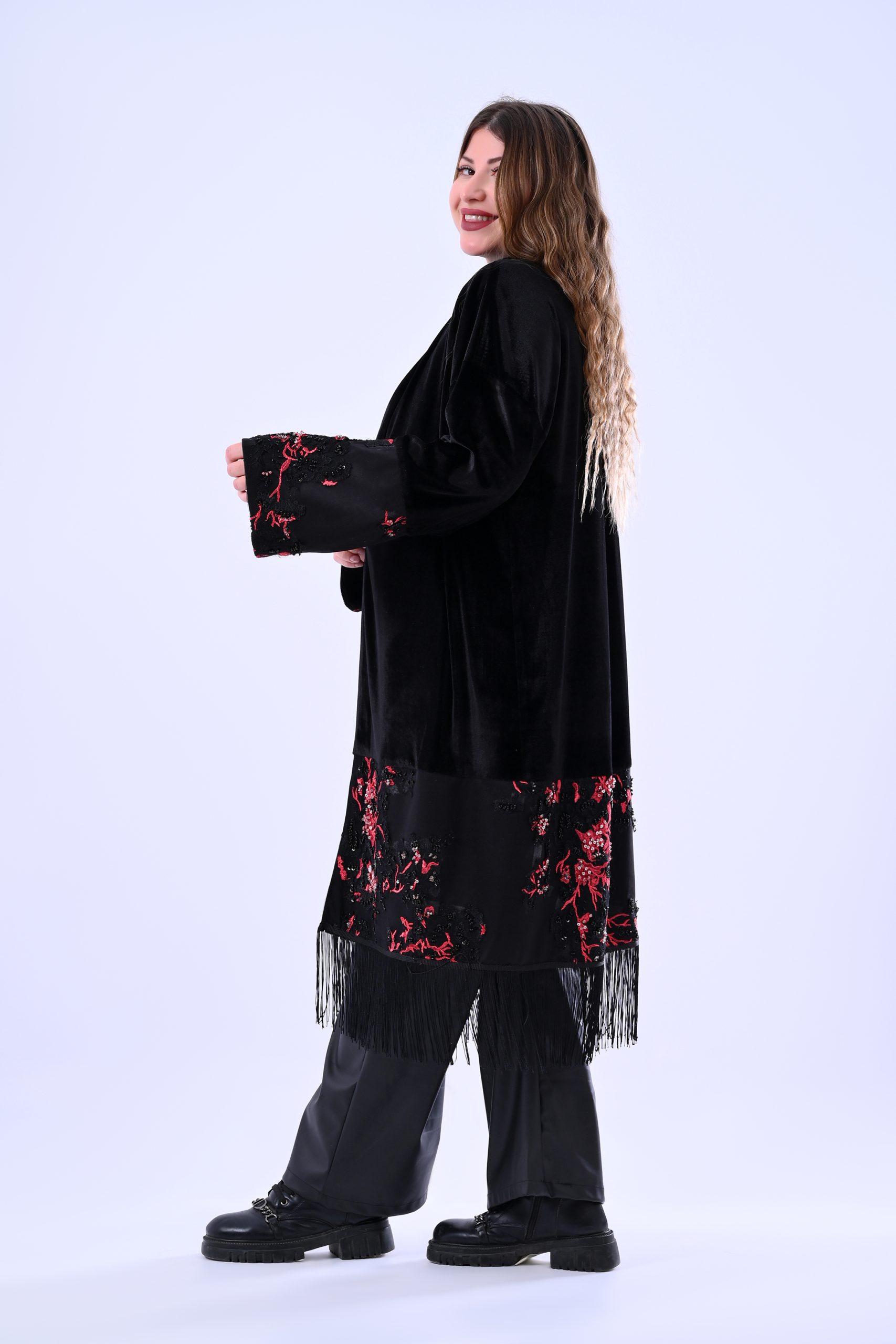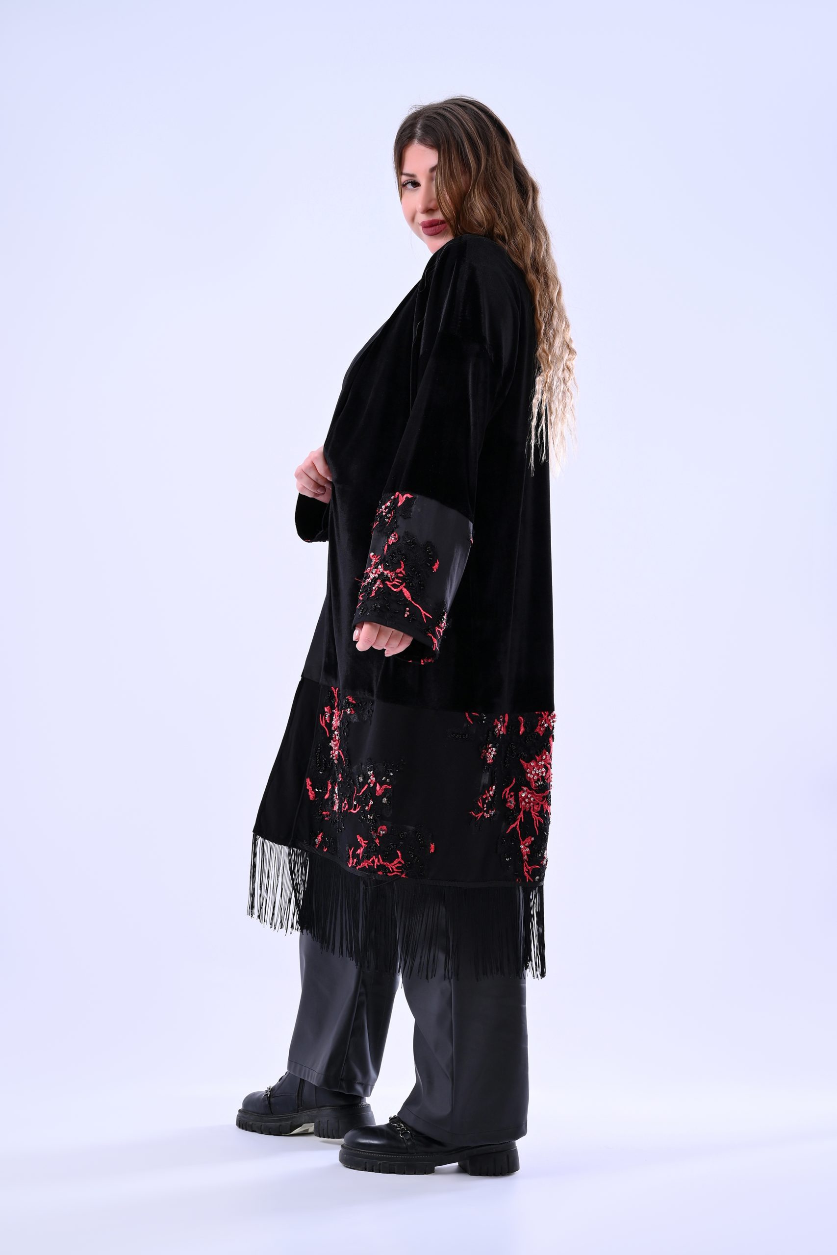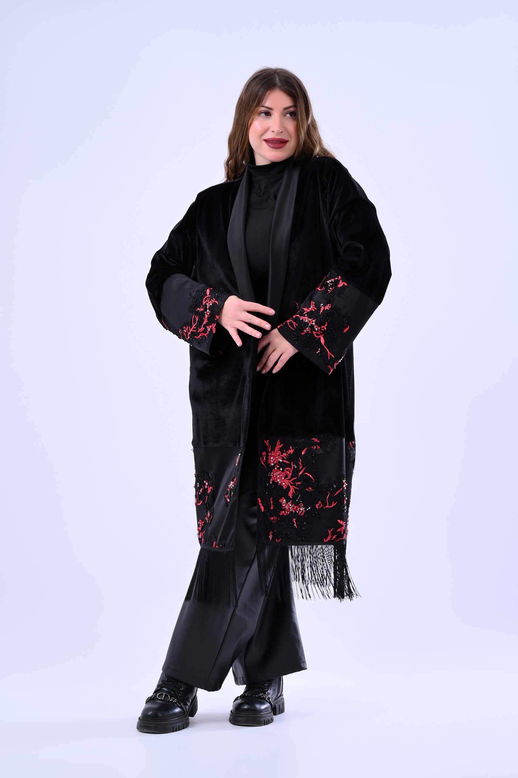 Velvet kimono with satin liner